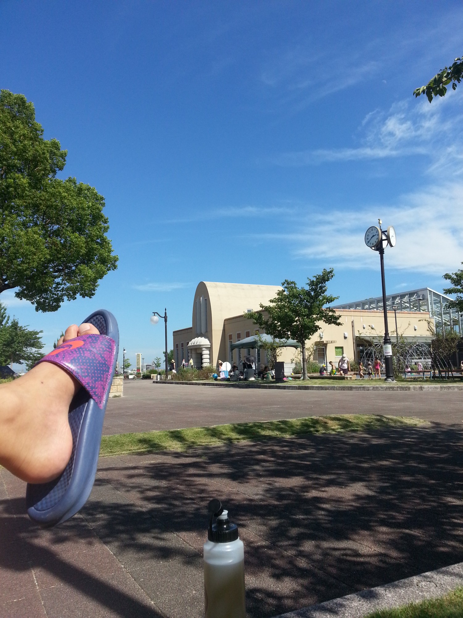 スタジオ近くのウォーキングコースへ。たくさんの方が歩いていて、お子さんが水遊びをしていたり、ポケモンしていたりそれぞれの時間を有意義に過ごしていました。