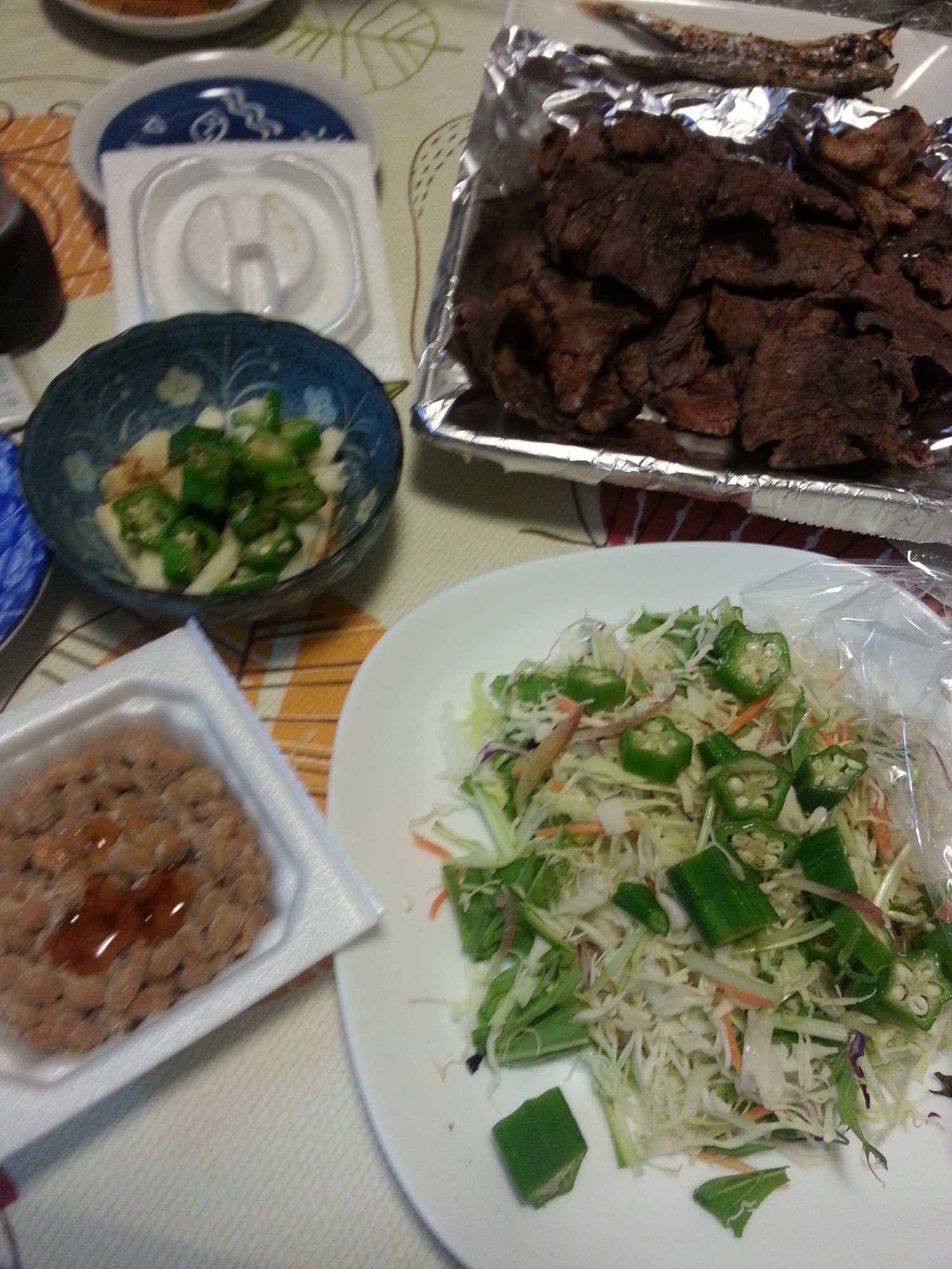 簡単男飯!赤身肉をわさびで。納豆、オクラサラダと簡単メニューでした。 コメント0件