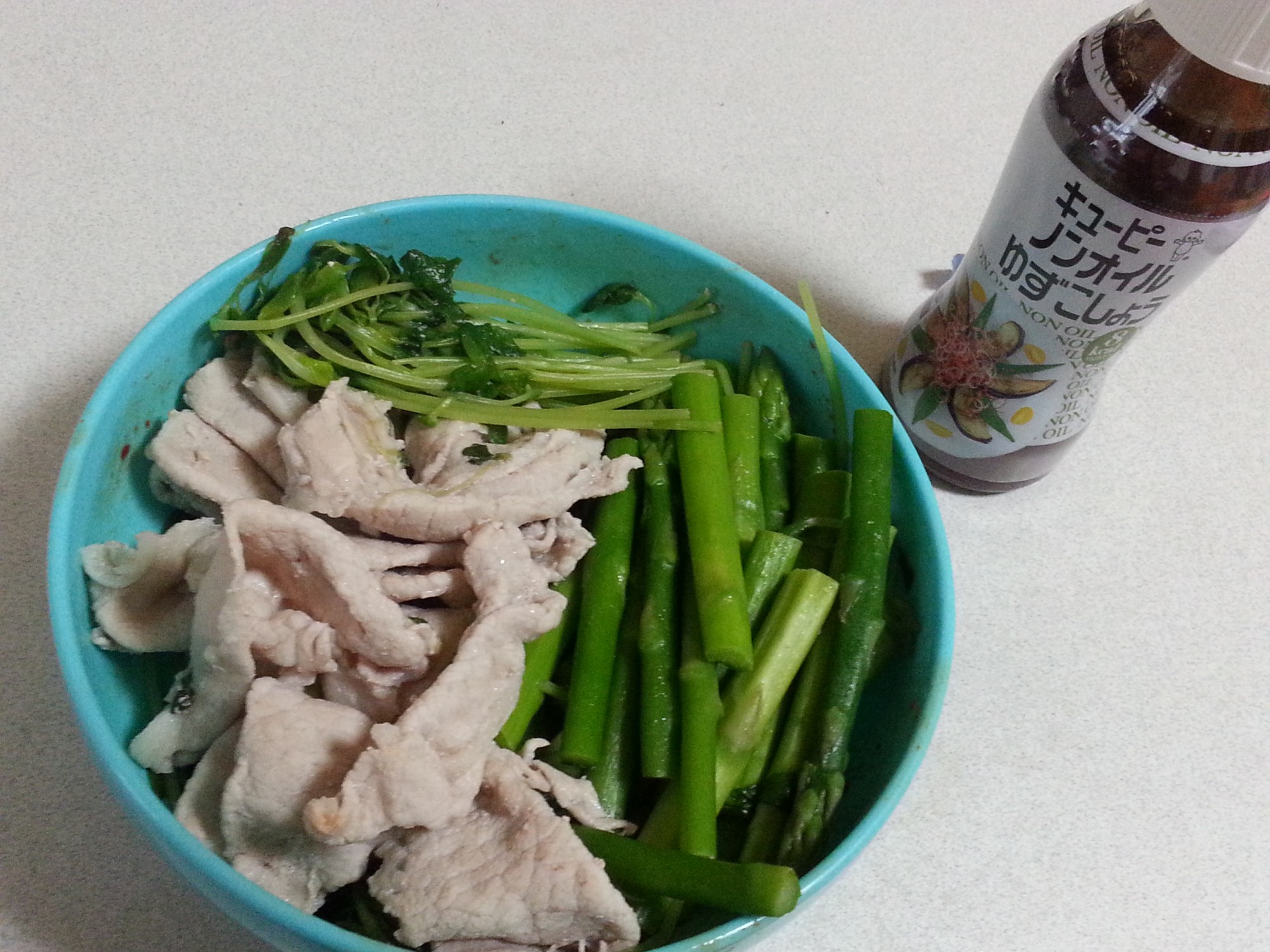 この日は豚しゃぶ。牛、鶏、豚を気分でローテーションしていますよ~