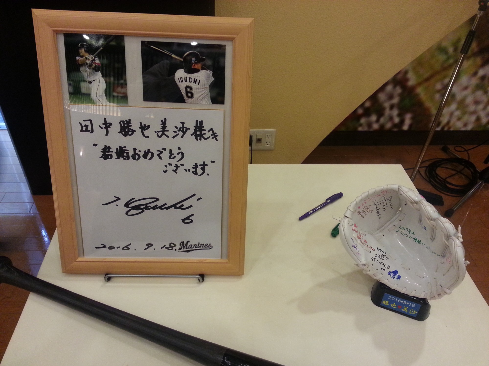 ドーム型のケーキだったり…プロ野球選手の使用していたバットなどがお祝いで届いていました。