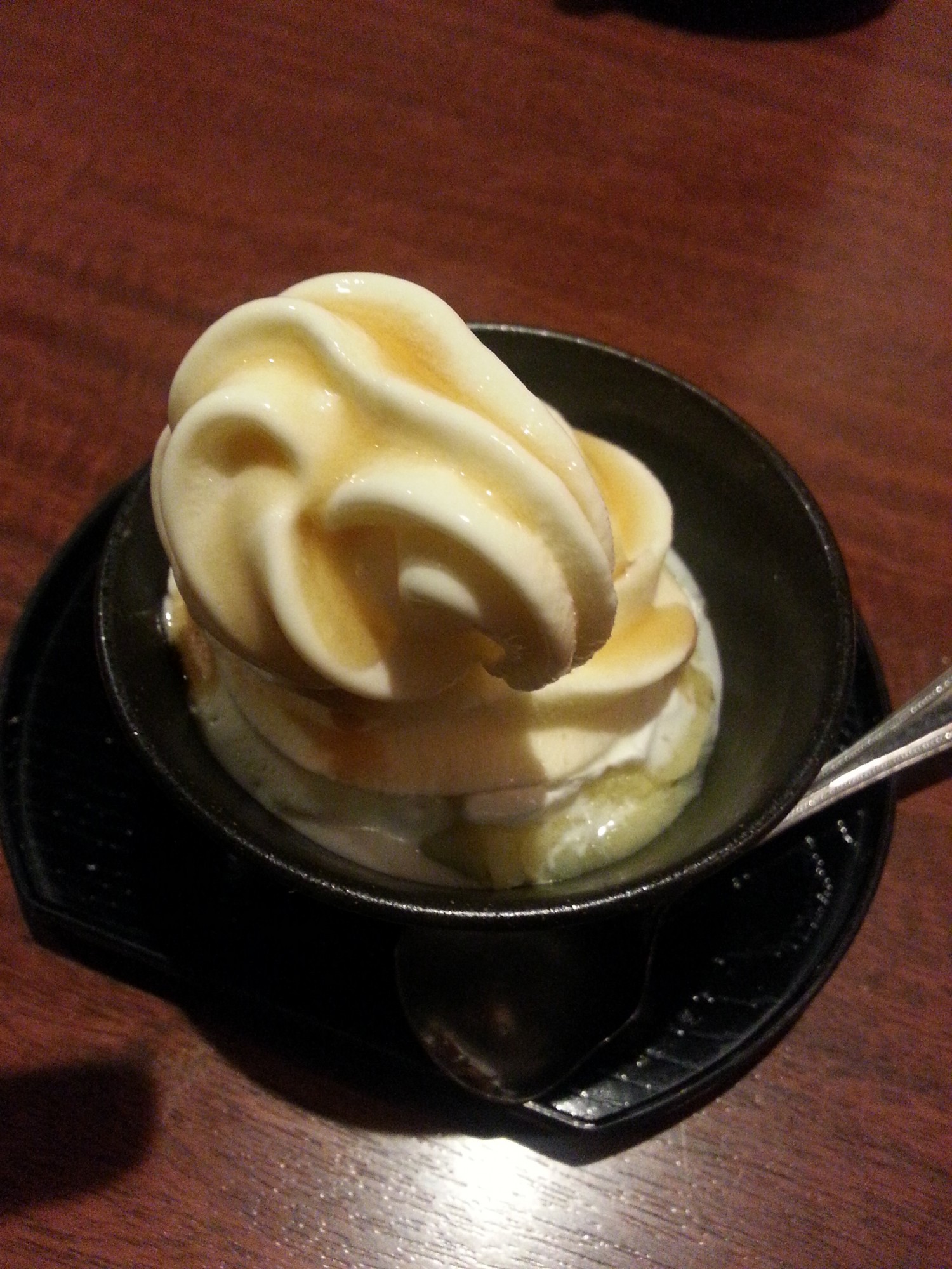 おいもちゃん(当店おすすめ)のポップにつられて試食。あったかーいサツマイモの上にアイスクリーム。