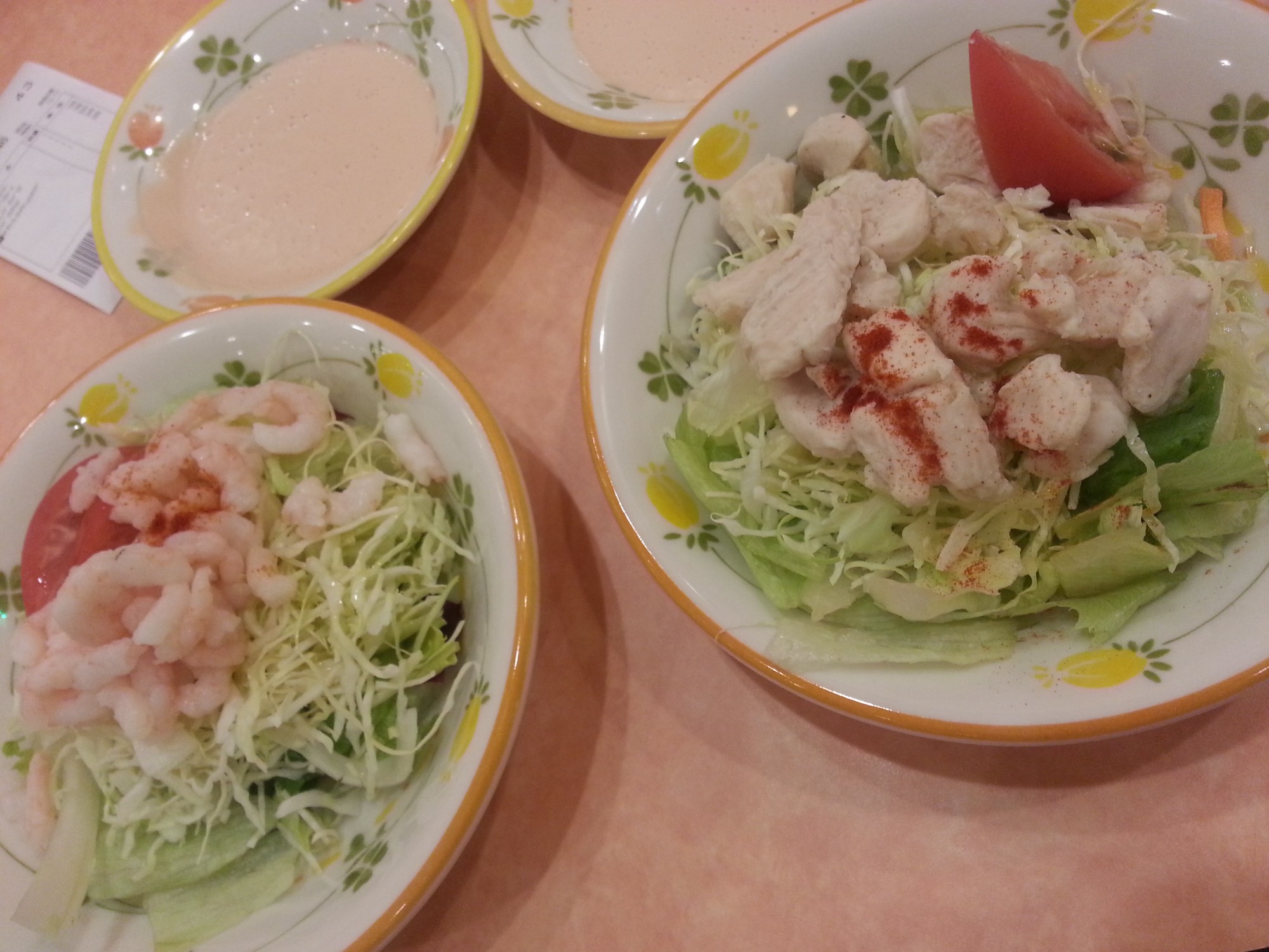 いつもと違う雰囲気のサラダ…レタスがキャベツに( ゚Д゚)