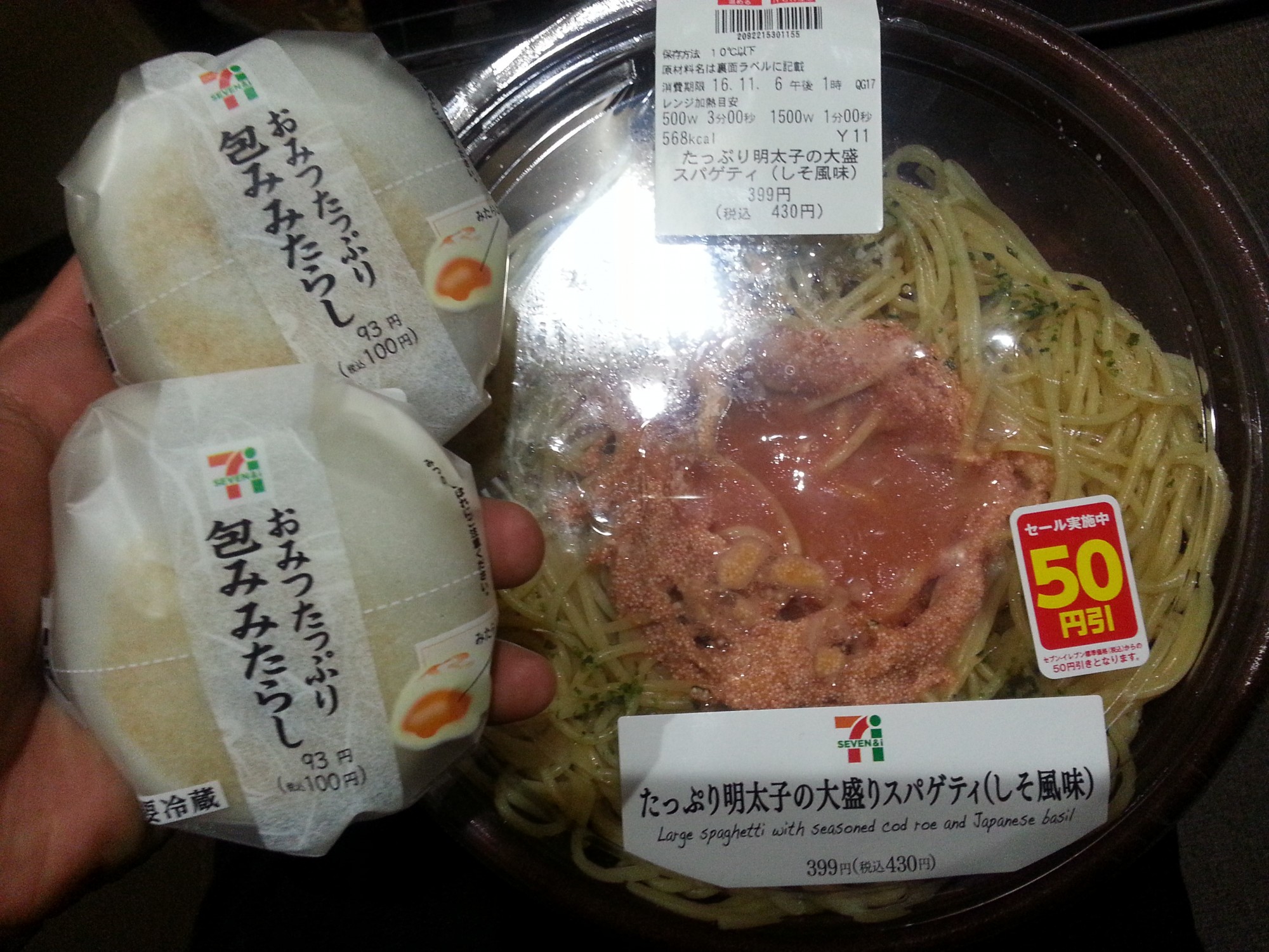 おにぎり代わりのみたらしと高炭水化物のパスタ