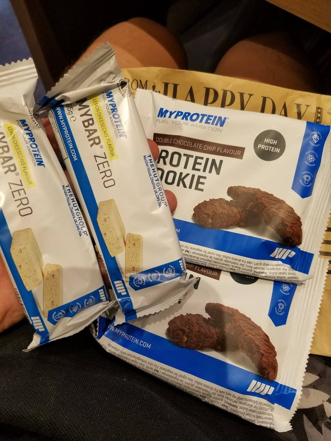 これは海外のプロテインクッキーです。カロリーは高めですがなんといっても満足・満腹感と言ったらそこらのお菓子とは比べ物になりません。
