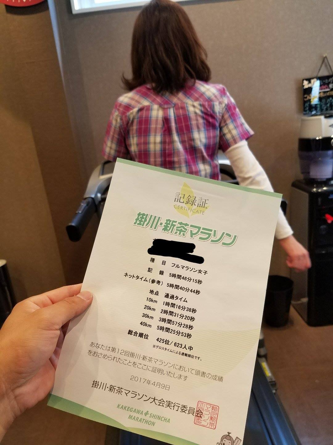 前回のブログからもわかるように、ウォーキングからコツコツとトレーニングを積み重ね、目標だったフルマラソン完走!!ようやく完走証と一緒に報告に来てくれました。