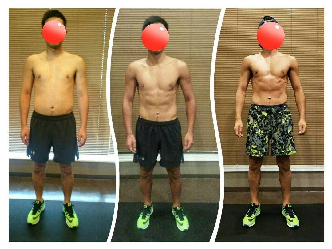 初めの一ヵ月は加圧をメインに低負荷、トレーニングにより通常よりも多くの成長ホルモンを分泌するようにトレーニングメニューを組み立てて行いました。